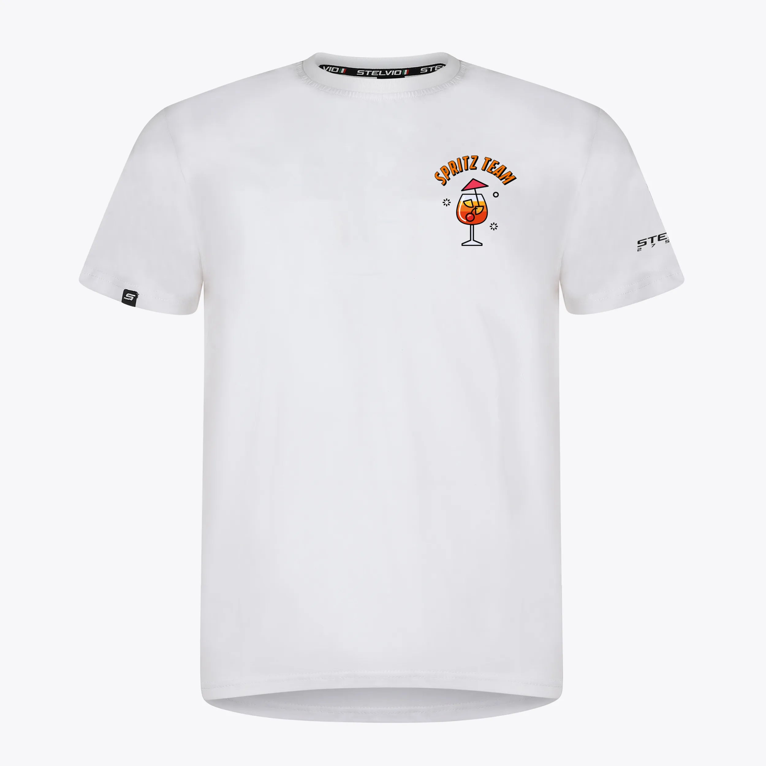 The SC Spritz Team T-shirt is a tribute to the most authentic and social side of Italian cycling. Inspired by the iconic SC Spritz Team jersey, it celebrates the spritz not just as a post-ride ritual, but as a symbol of sharing, lightness, and enjoyment after the effort.